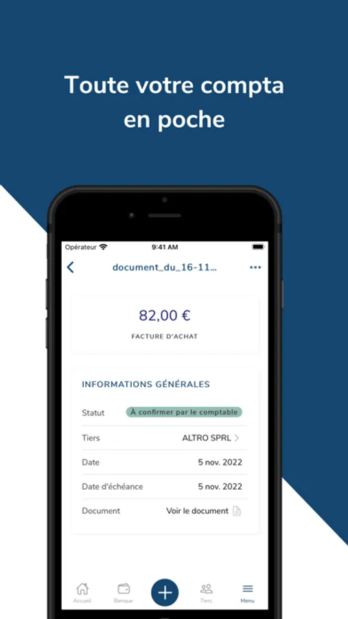 • Centralisez vos factures et autres documents dans un espace unique. Retrouvez vos historiques clients et fournisseurs en 1 clic.