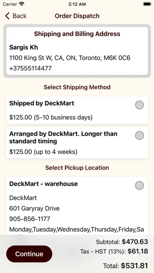 The app has various features to make ordering and delivery more convenient. These features include multiple shipping methods that conform to any customer's needs, same-day delivery for small, medium, and large orders, next-day delivery for small, medium, and large orders, and the option to schedule future deliveries. Customers can also check product availability on their phone without needing to call DeckMart, get delivery quotes for shipments across Canada, and access their order history and statuses, including cancelled, shipped, packed, and invoiced. Furthermore, the app allows customers to shop by collections, which means they can see all related products to finish the job on the same screen and add them to their cart with just one finger tap. Lastly, customers can obtain pricing information on their phones, making ordering fast and simple.