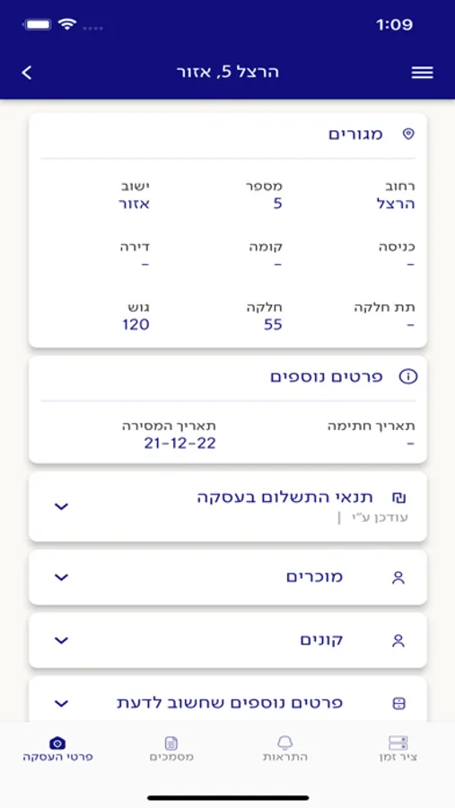 מתחילת הטיפול ועד לסיומו ברישום הזכויות על שם הקונים, מקבלים הצדדים באמצעות האפליקציה, הנחיות, הודעות ועדכונים, כולל מה נדרש בכל שלב, מה דרוש כדי להתקדם ומה הסטטוס. התוצאה היא חוויית מכירה ורכישה נעימה שמשאירה לכל הצדדים טעם טוב ואנרגיות חיוביות.