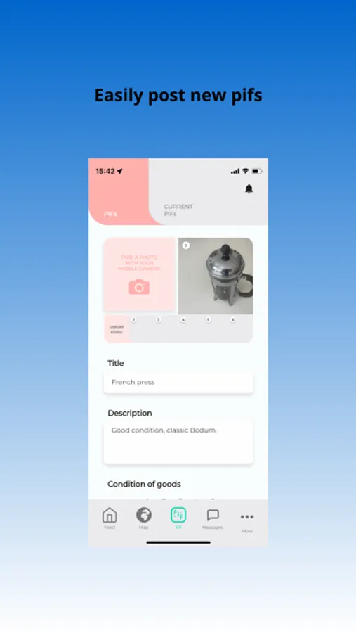 Pass on clothes and stuff in your local neighborhood and make your neighbor, your wallet, and the planet happy! The PIF app makes giving easy and fun. Start piffing – spread happiness and contribute to a more sustainable world!
