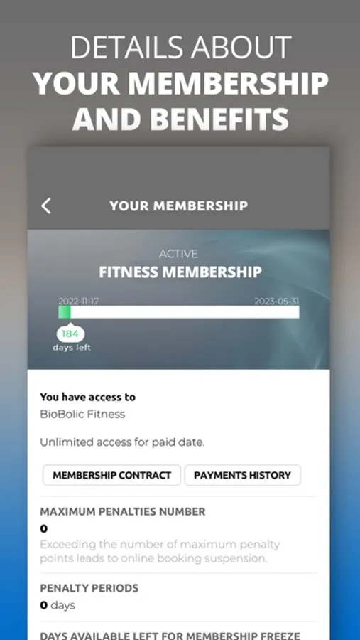 • Details about your account - you can keep track of your membership, see how many days you have left, and its benefits
