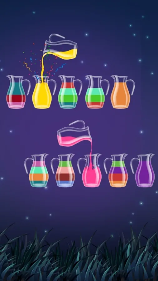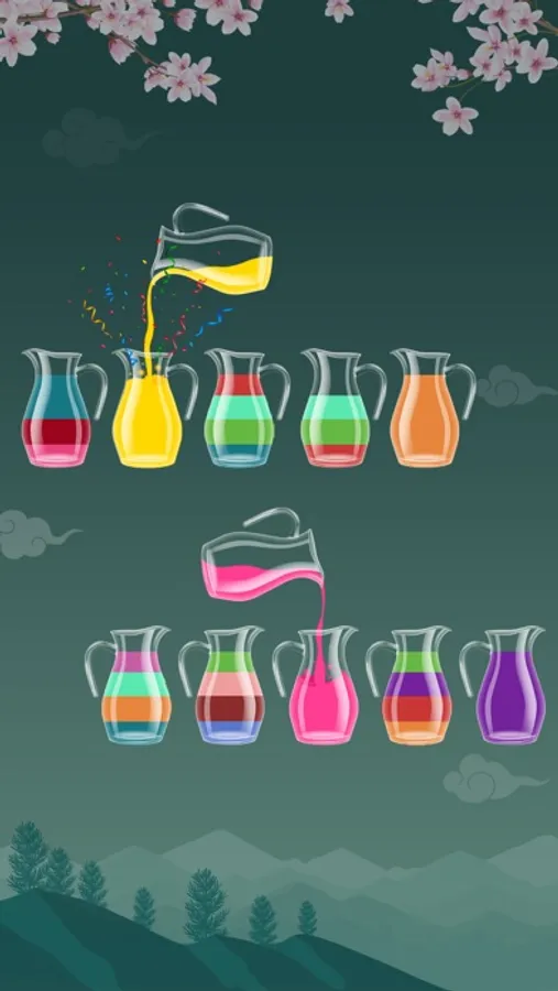 • The rule is that you can only pour the water if it is linked to the same color and there’s enough space on the glass.