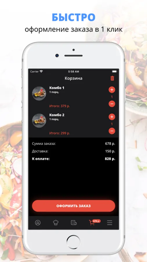 Скачивайте наше приложение, оформляйте заказ и наслаждайтесь любимой едой, где бы Вы ни были! Приятного аппетита!