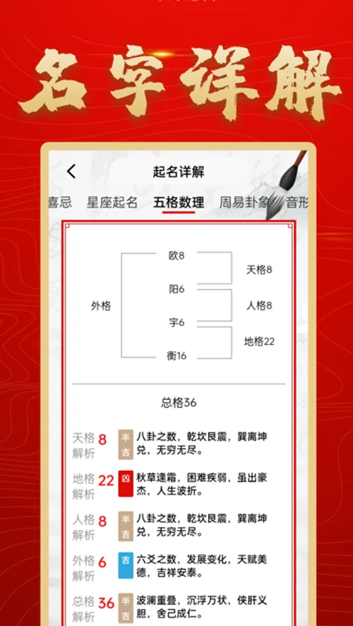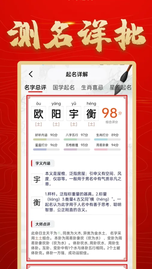 【起名大全】综合考虑传统汉字美感,生肖、音律、音调、笔画、生辰五行、易学数理八大维度,结合名字属性、传承易经、生辰、星座等传统文化,对事业、婚姻、健康、爱情、未来、家庭、学业等多方面分析起名;