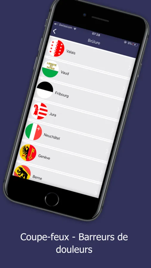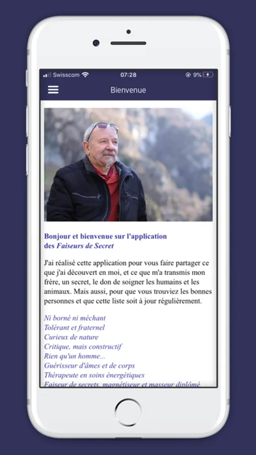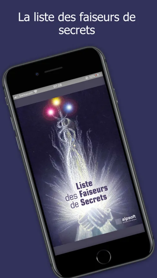 L'application Faiseurs de secret vous permettant d'avoir toujours sur vous la liste des faiseurs de secrets, coupe feux, barreurs de douleurs de Suisse.