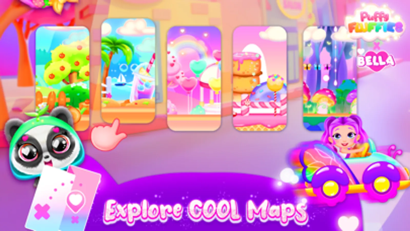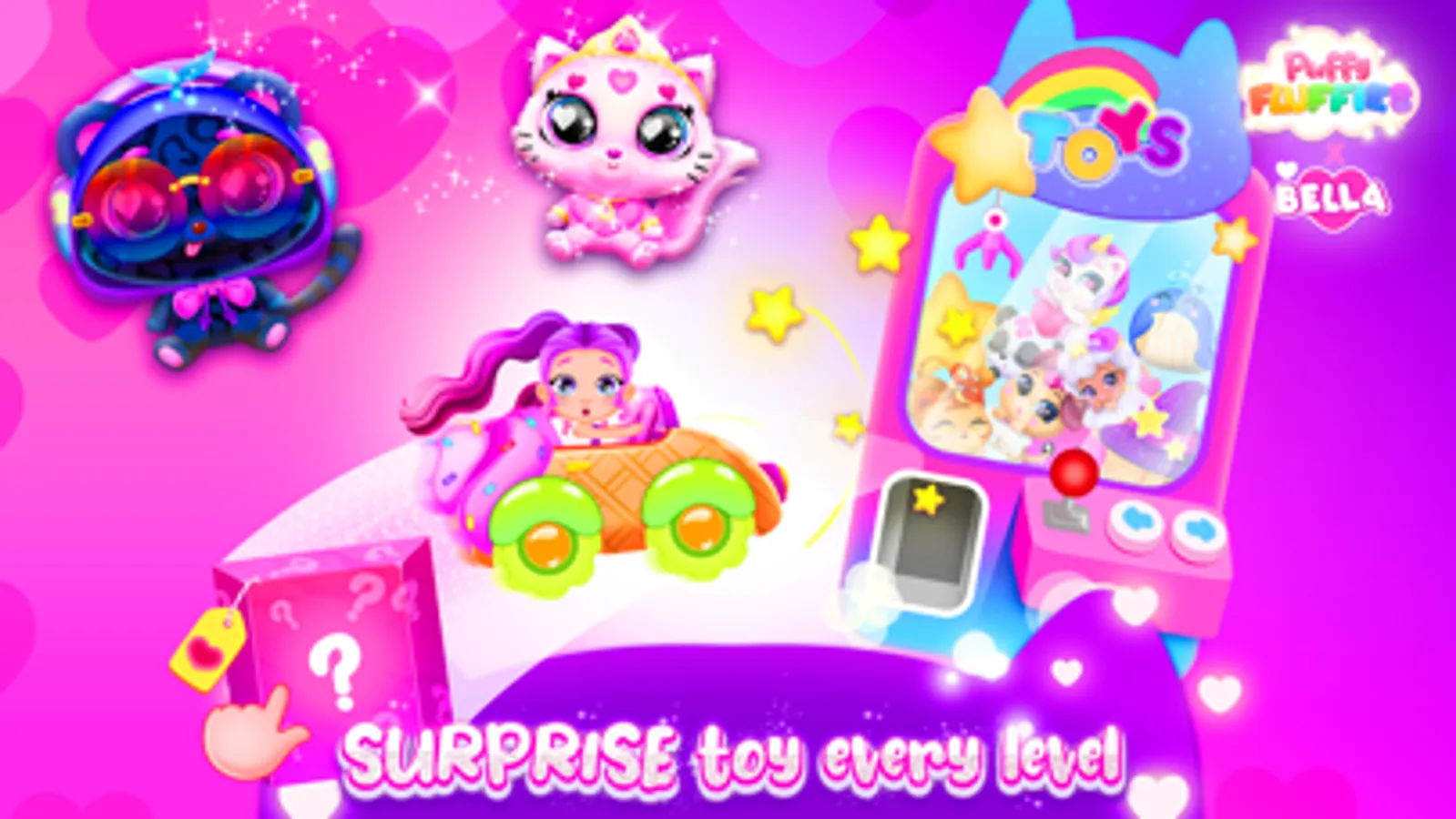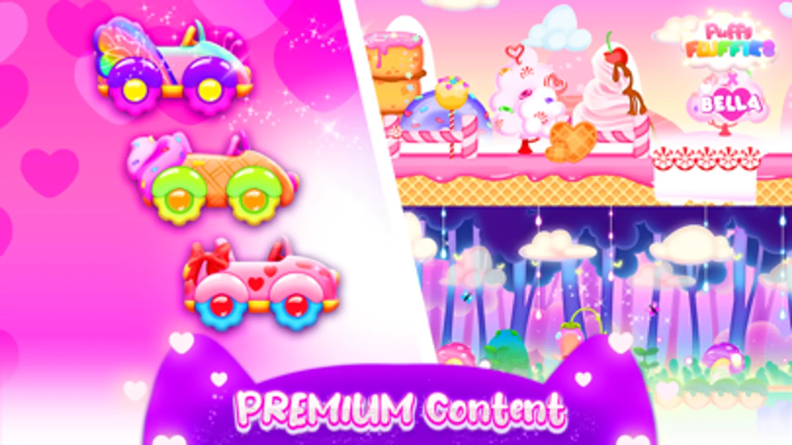 Enjoy this new car game together with the adorable Puffy Fluffies. Select the car of your dreams and hit play. Once you do that, different colorful worlds will pop up on the screen. Choose to drive on a tropical beach, a lovely garden, an enchanted forest, or even Candyland: the choice is yours! Now it is time to become a professional driver. Press on the arrow located on the bottom-right corner to start the engine and have the time of your life. If you want to stop the vehicle press the other arrow next to the one that was just mentioned. Enjoy the magical ride and collect as many coins as you can. They will be helpful later. Try your best to avoid obstacles and do not forget to press the up-arrow to jump. Put your agility to the test and be as quick as you can because you will be timed. The less you take to complete the race the better. At the end of each level, you will be rewarded with gold coins. Play as many times as you like, this will help you level up faster. After you have earned enough gold go to the store and explore all of the possible options. The boxes that you see contain amazing mystery prizes. Pick the one that you fancy by tapping on it. Open the box and enjoy the company of your new Puffy Fluffy. They are so cute and cannot wait for you to gather all of the money you need to buy them. If you want to explore other exciting worlds you should gain a lot of coins. These will be unlocked once they are bought. If you feel like you need a break while driving there is no problem. Just hit the pause button located on the top-left corner of the screen. There is no need to end the race completely. The Puffy Fluffies are very cute but they are not just for display. You can play with them because they are also squishy toys. Make sure to give them a good squeeze. See how many you can collect and above all have fun.