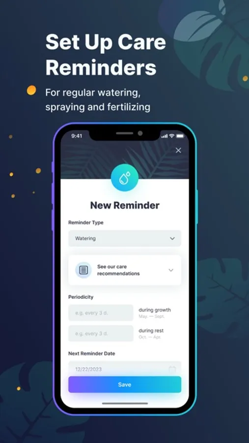 Forget to water your plants on time? Not anymore! Set up plant care reminders and get notified when it’s time to water, fertilize or repot your plant. You can even create custom reminders if your plant has special requests.