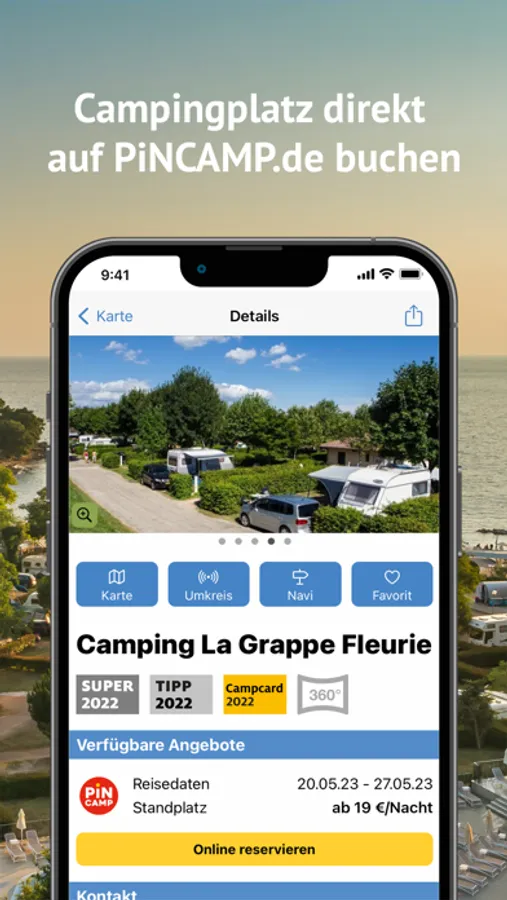 + Verfügbarkeits- und Echtzeit-Preisinformationen zu ca. 3.000 Campingplätzen mit Buchung direkt über PiNCAMP