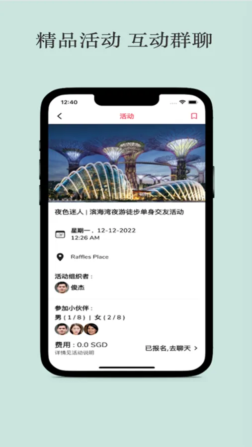 这是一个在新加坡的华人青年社区。在这里你可以相亲,交友,聊天! 以及各种各样的线下活动等你来参加!