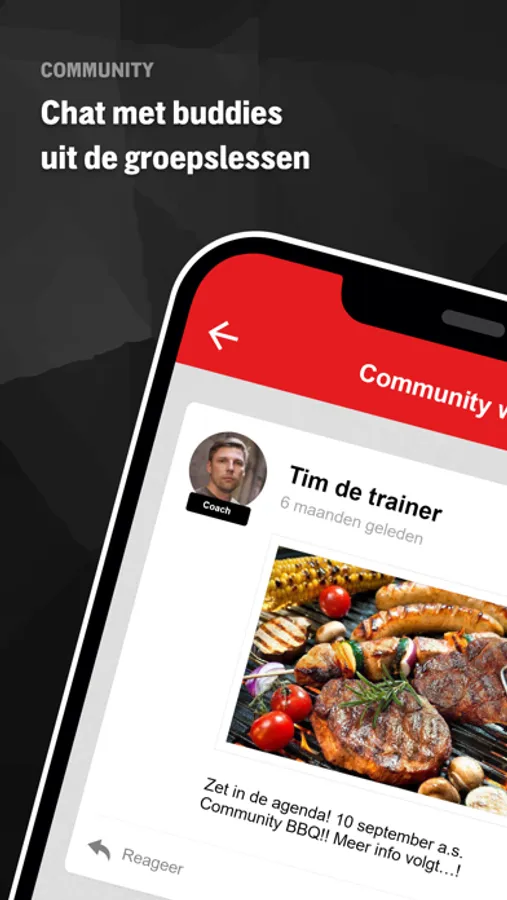 - Houd je trainingprogressies bij en volg je trainingbuddies.
