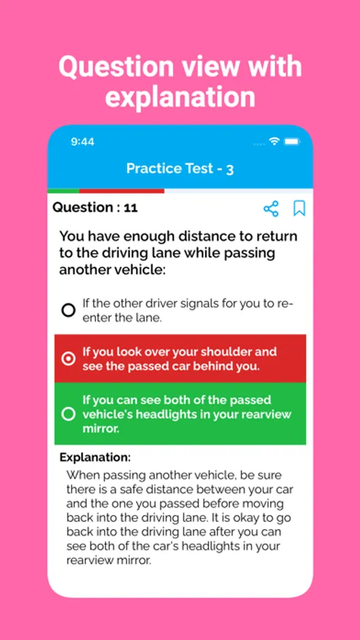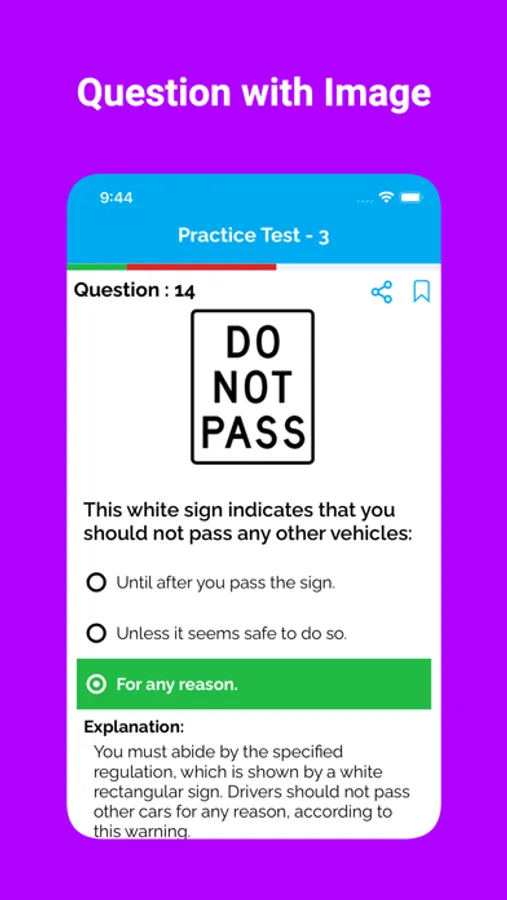 The app includes a variety of practice questions for the DMV Permit Test exam. These questions are based on the Arkansas DMV handbook Users can track their progress and identify areas where they need more practice, allowing them to focus their studying on the areas where they need the most improvement.