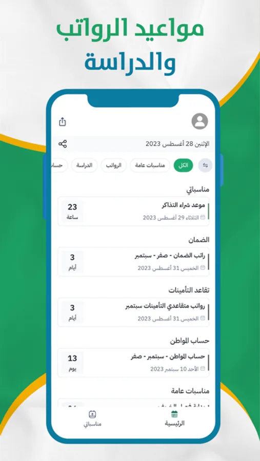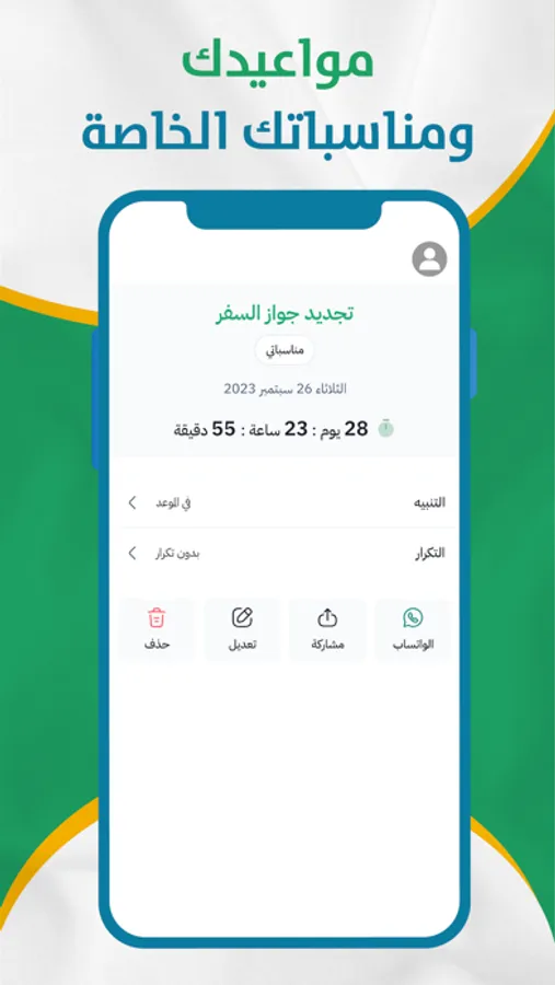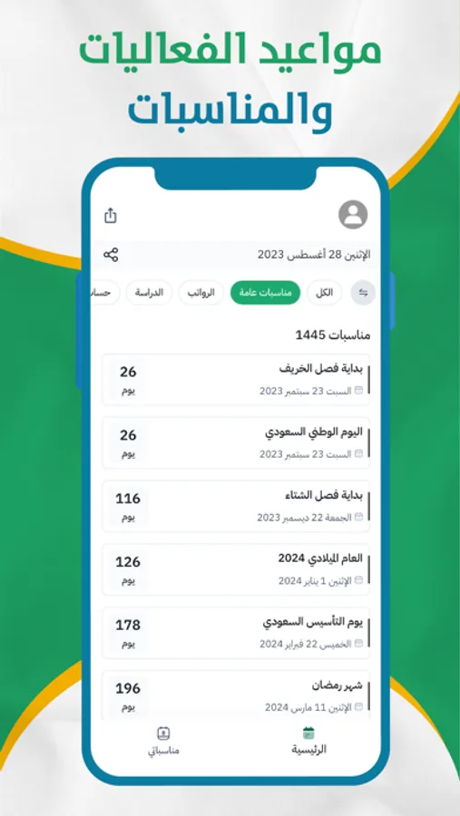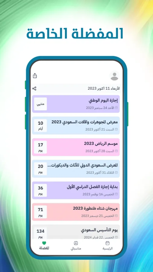 - مناسباتك الخاصة ويمكن استرجاع جميع المناسبات بعد حذف التطبيق أو مزامنتها مع جهاز آخر.