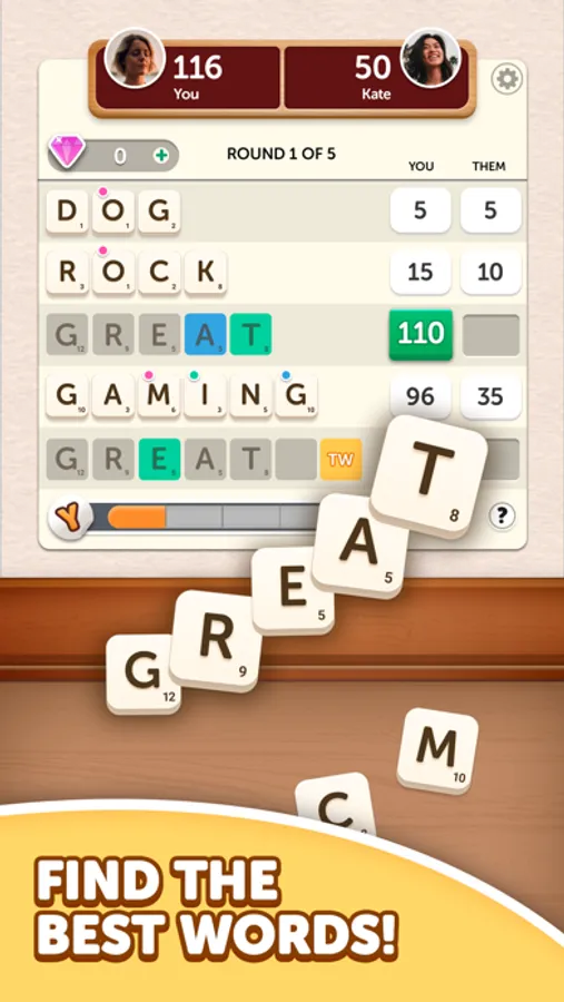 Word Yatzy is more than just a scrabble game with friends. How good are you at spotting words from a random set of letters? Do you have the Yahtzee skills to fill all 5 slots and score big?! Get ready to test your word and strategy skills on this new addictive word game!