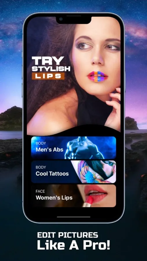 Just upload your picture, provide instructions, and get a professionally edited picture in several minutes.Edit body with six-pack abs stickers, muscles stickers, chest stickers, add tattoos to your body, change your hair, beard, mustache, etcFeeling bored with old style of mustache? Use our body fit manly app and try latest and trending mustaches which gives very smart and dashing look to your picture.This photo editor doesn’t rely on AI technologies. All edits are performed manually, so the result you receive always looks natural.Adding six-pack abs with just a few taps or trying on stylish lips is something that both males and females are trying to achieve with Beautify Pics Editor app.Using this Beautify Pics Editor App, you can improve your: 1) Abs builder2) Lips changer3) TattooYou can select one of the 3 editing modes: abs, lips, and tattoos