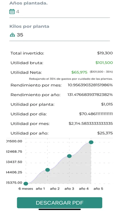 Siembra de agave, adquisición de agave, venta de la plantación, cosecha de capital.