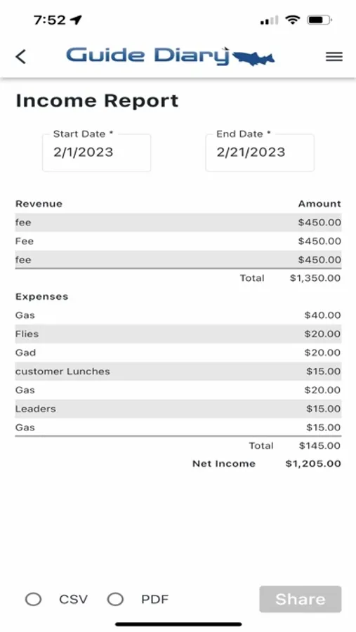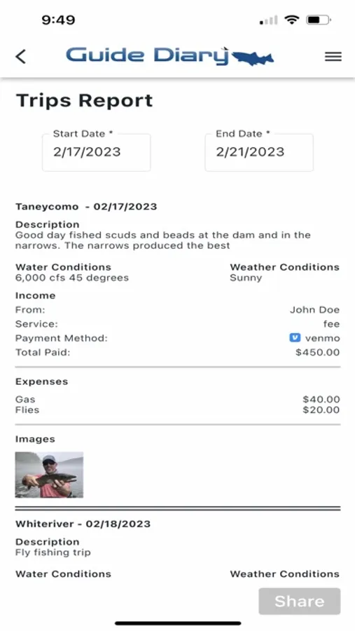 Guide Diary, created by Keyhole Software, makes managing your fishing guide business easier, so you can spend less time on paperwork and more time on the water. With Guide Diary, you can schedule your trips, track your expenses and income with ease, store pictures of your trips, share your trips on social media, and get a clear picture of your finances.