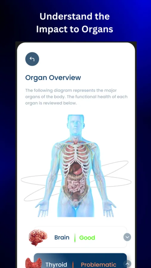 - Understand, manage, and get directed care for optimizing organ and body function within minutes