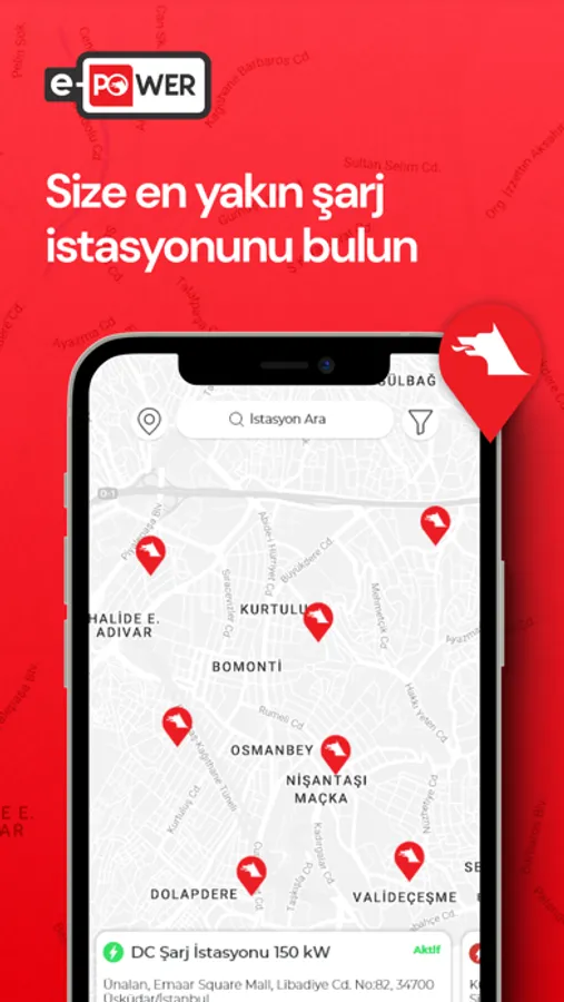 Bulundukları lokasyona en yakın e-POwer elektrikli araç şarj istasyonunu harita üzerinde görüntüleyebilir. Seçeceği Şarj istasyonu için Rezervasyon yapabilir, QR Kod ile şarj işlemini başlatabilir, anlık şarj durumunu ve şarj geçmişini görüntüleyebilir. Uygulama üzerinden online ödeme yapabilir.