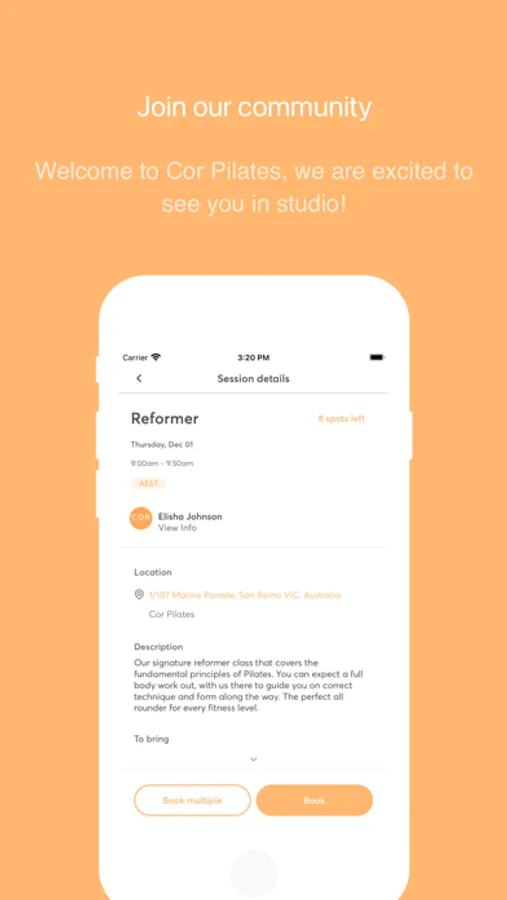A vibrant, boutique Reformer Pilates studio in the heart of San Remo. At Cor we believe Pilates is for everybody. We are here to bring you a variety of classes that combine all the best things like breathing, strength, cardio and stability. No experience necessary!