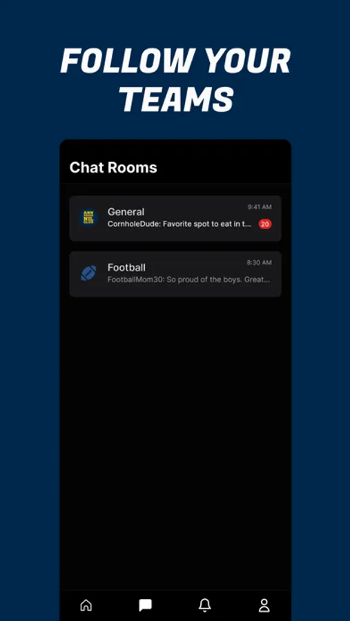 Next-generation fan conversation lives here. Interact with student-athletes and your friends on the message board and inside the chat rooms.