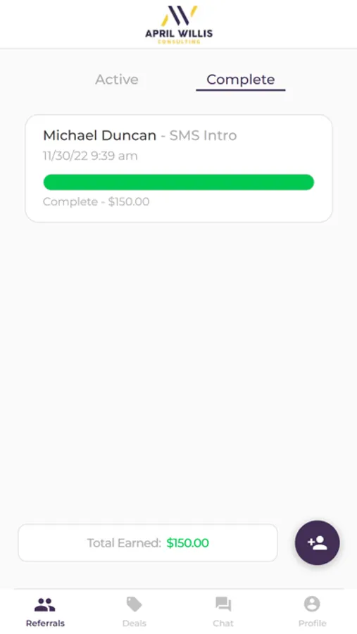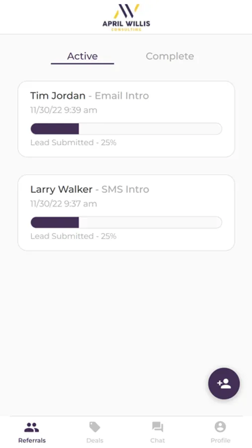 3. April Willis Consulting clients & partners can submit & track referrals through the app.