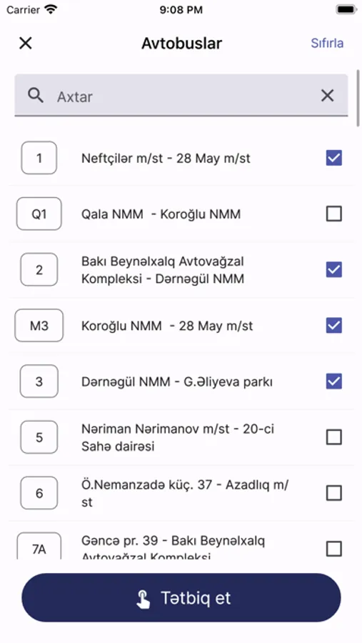 Tətbiqimizə göstərilən avtobusların nömrələri: