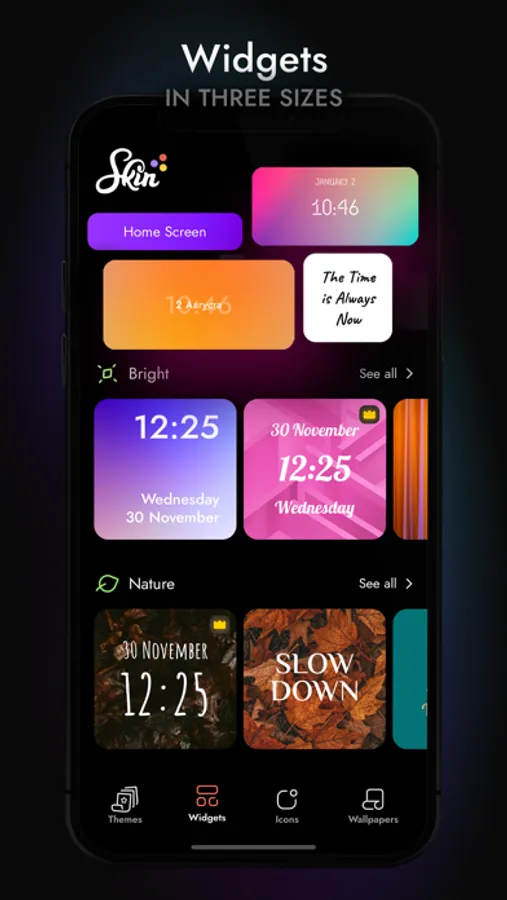 Use hundreds of pre-designed widgets, icons, wallpapers and themes to customize your screen aesthetic!