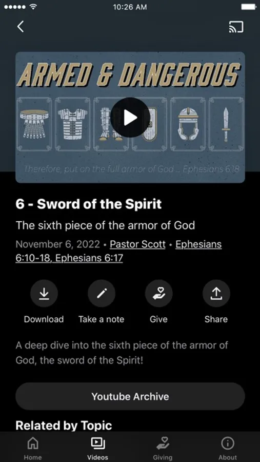 This app will help you stay connected with the day-to-day life of our church. With this app you can: watch or listen to past messages; stay up to date with push notifications; share your favorite messages via Twitter, Facebook, or email; and download messages for offline listening.