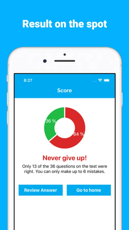 - Result on-the-spot with score