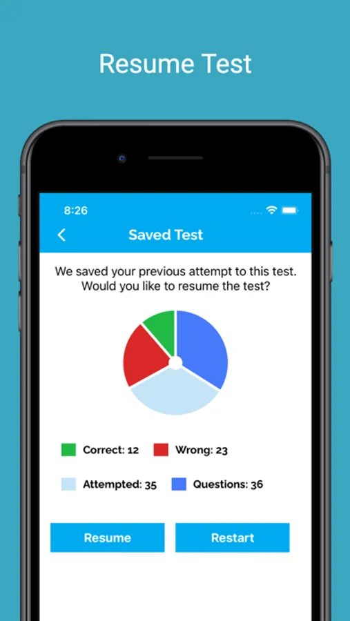 App tracks the users completed practice tests. The app tracks their progress, allowing them to identify areas for improvement and track their overall progress.