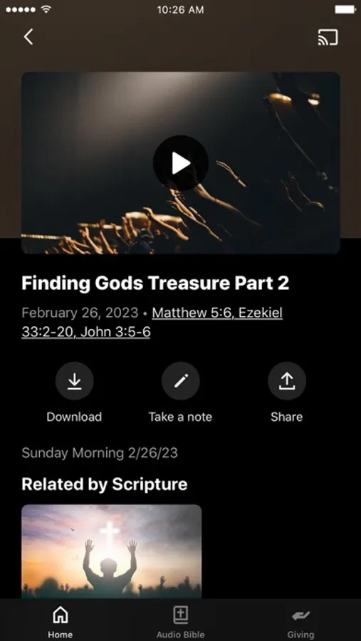 This app will help you stay connected with the day-to-day life of our church. With this app you can: watch or listen to past messages; stay up to date with push notifications; share your favorite messages via Twitter, Facebook, or email; and download messages for offline listening.