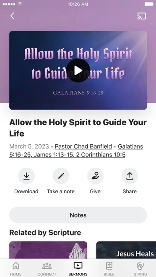 This app will help you stay connected with the day-to-day life of our church. With this app you can: watch or listen to past messages; stay up to date with push notifications; share your favorite messages via Twitter, Facebook, or email; and download messages for offline listening.