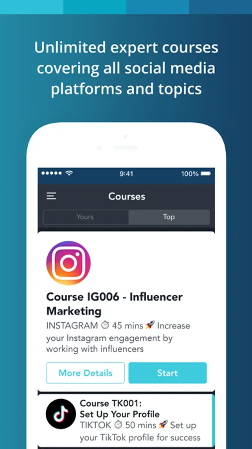 - Over 120+ expert social media courses and learning paths