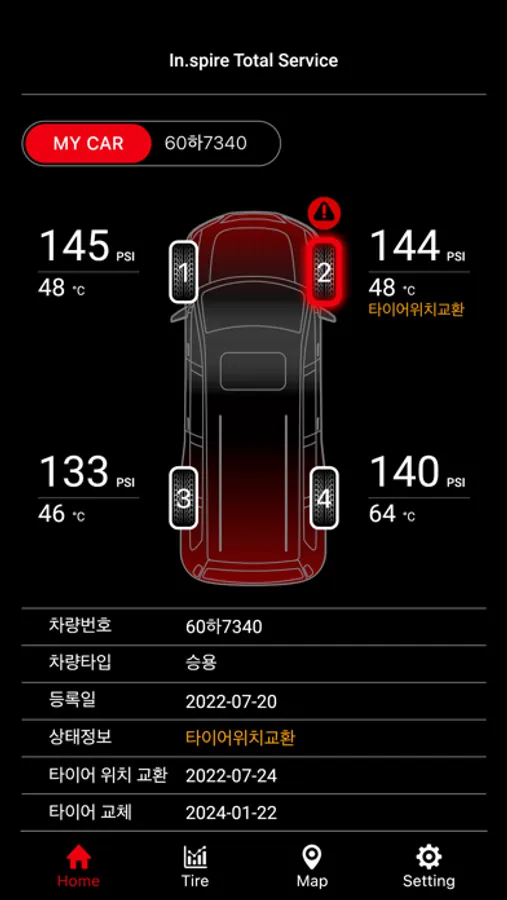 ◇ 주행 중 공기압, 온도, 주행시간, 가속도 등 타이어의 상태를 모니터링하고 운전자에게 경고 및 주의 알림을 전해 사고를 예방해주는 시스템