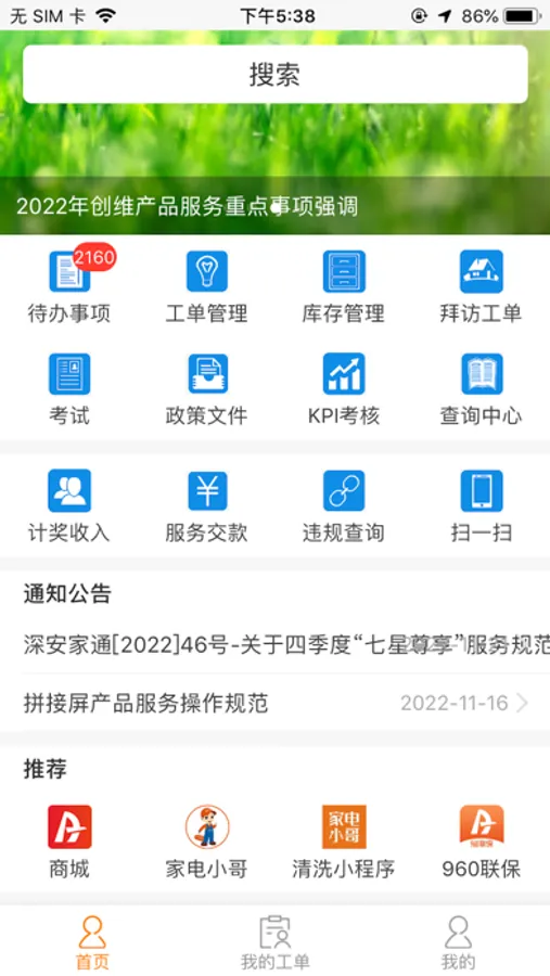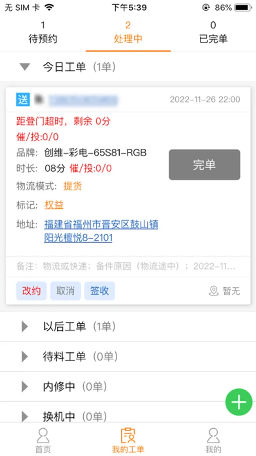 【工单管理】预约、接单、改约、领料、备注、完工全流程一个都不少。短信告知、地图导航、家电机号扫码输入、故障反馈录音记录、拍照还原细节、电子签字确认,多渠道建单提升工单管理效率。