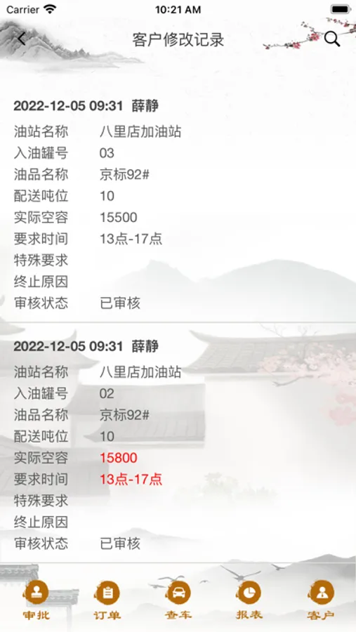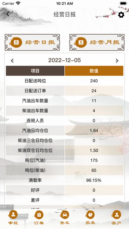3.管理岗实时查询加油站要油情况及配送情况,可查询配送日报,月报等。