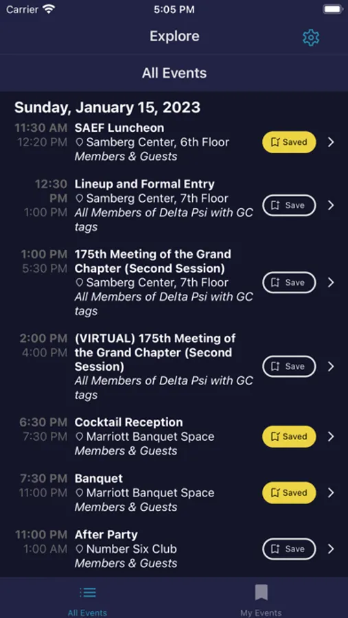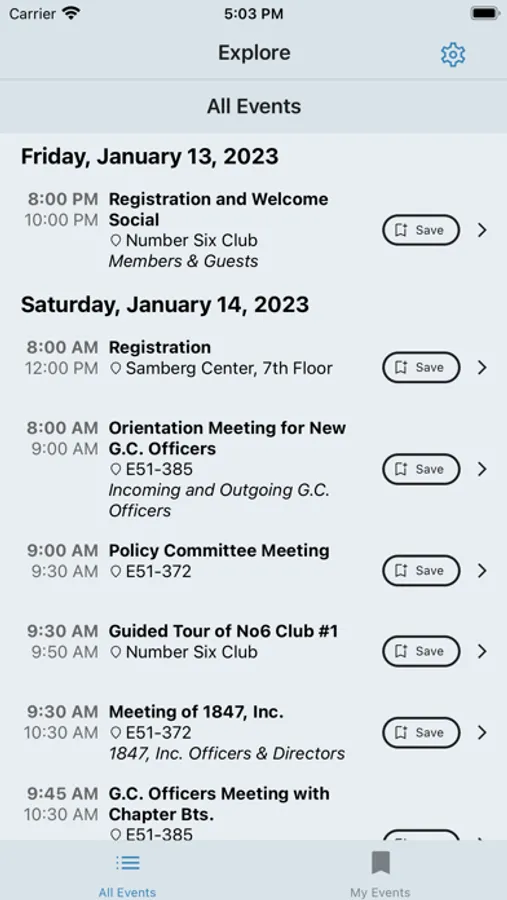 Browse all events for this year's GC, save ones you're interested in, navigate to them easily from the conference app, and use notifications and calendar integration to stay on top of this year's schedule!
