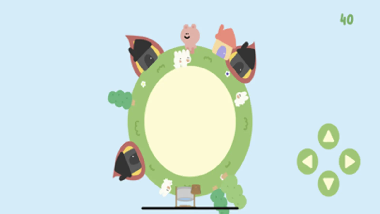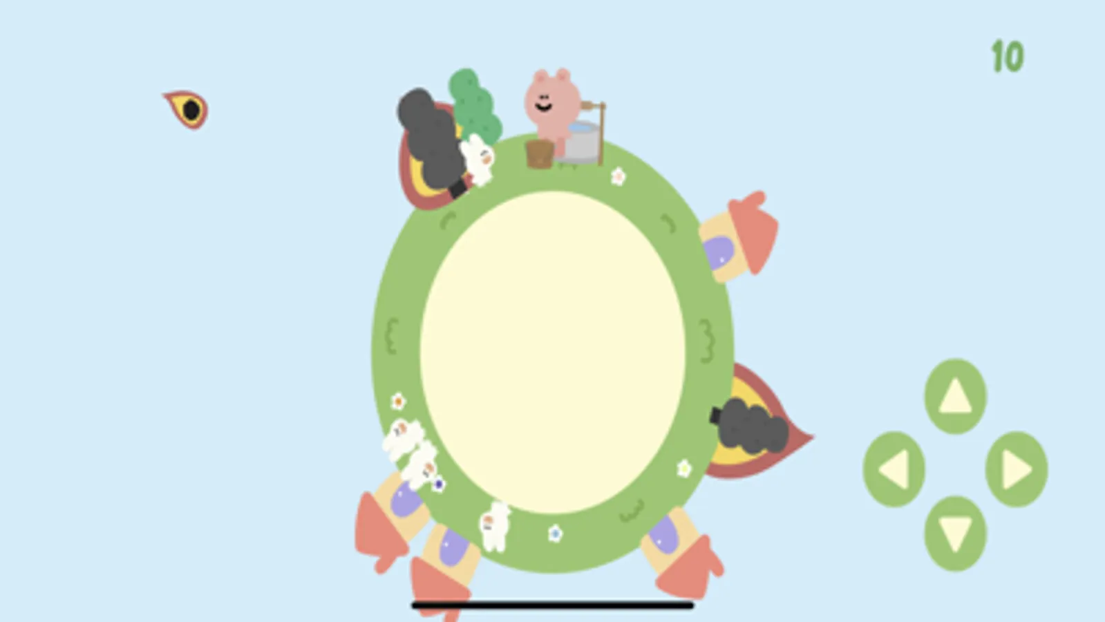 Move the bear around the village, catch rabbits and release them into the house to prevent meteors from falling into the village, scoop water from the well and pour it on burning places to put out the fire.