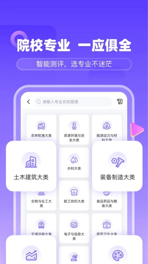 覆盖全国高职单招院校,汇集双高院校、国家级示范职业院校,查院校选专业一站式服务,院校介绍、招生简章、考试安排、院校PK、排行榜一应俱全帮你快速选择心仪学校