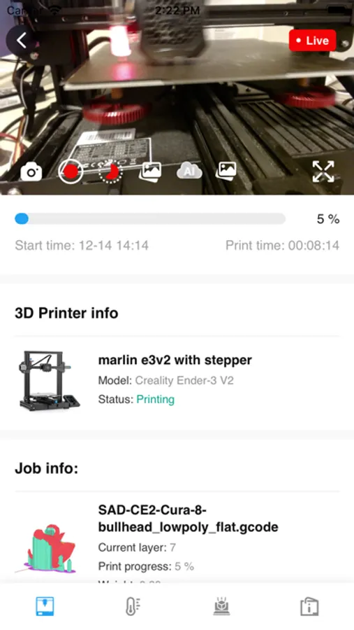 2. Remote control and monitoring: Watching a 3D printer operate is mesmerizing yet painfully slow. Cloud 3D print offers advanced remote monitoring and control features for your printers. Cloud monitoring allows you to view real-time progress of your jobs with our snapshot features and the ability to record live videos.