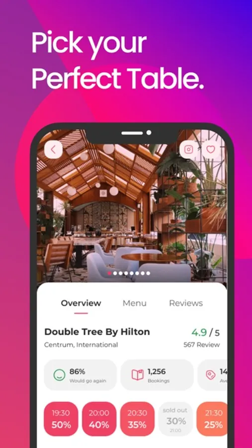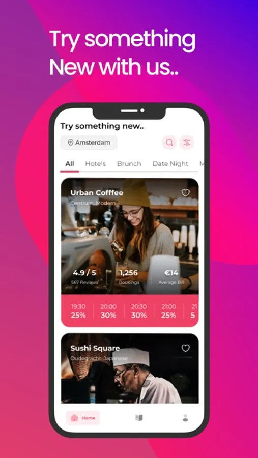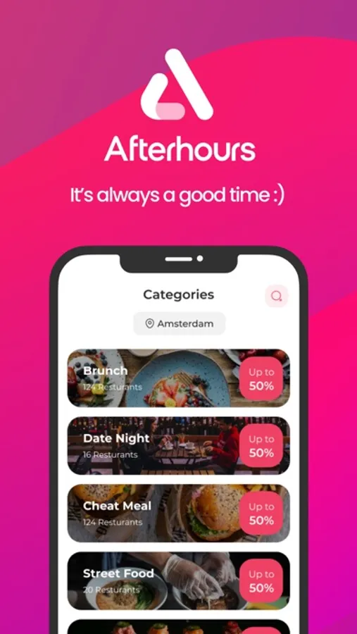 Use Afterhours to discover upscale dining locations, hotel restaurants, and gourmet delicacies in urban areas. Afterhours features an extensive selection of elite and full-service venues, all offering fluctuating rates on their complete menus, every hour of every day. There's no need to fuss about payments or particulars, as Afterhours is free 100% of charge. Just select your time and rate, book your desired time, and arrive at your table, everything else is taken care of.