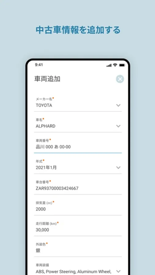 操作も簡単で車両情報を入力し車両の写真をアップロードするだけです。