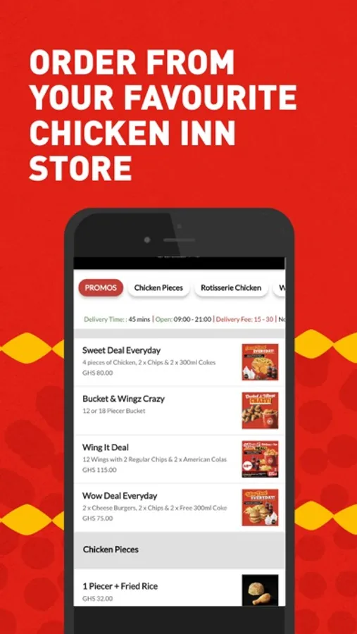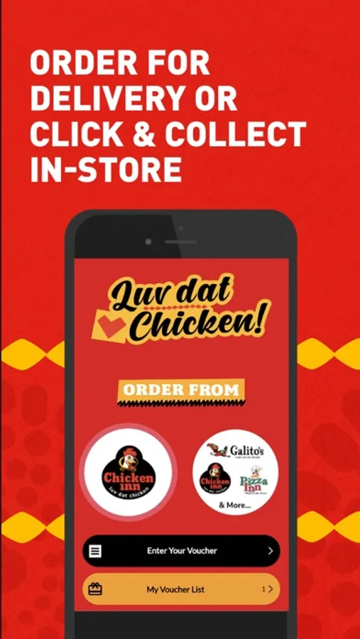 Download the app from the App Store, choose your location and we'll present you with personalised location-based Chicken Inn restaurant offerings.