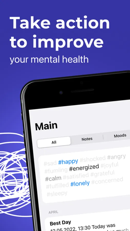 Use the Self Harm Tracker: Mental Calm app to check up the first signs of depression. Make notes about your mental health and mood swings every day.