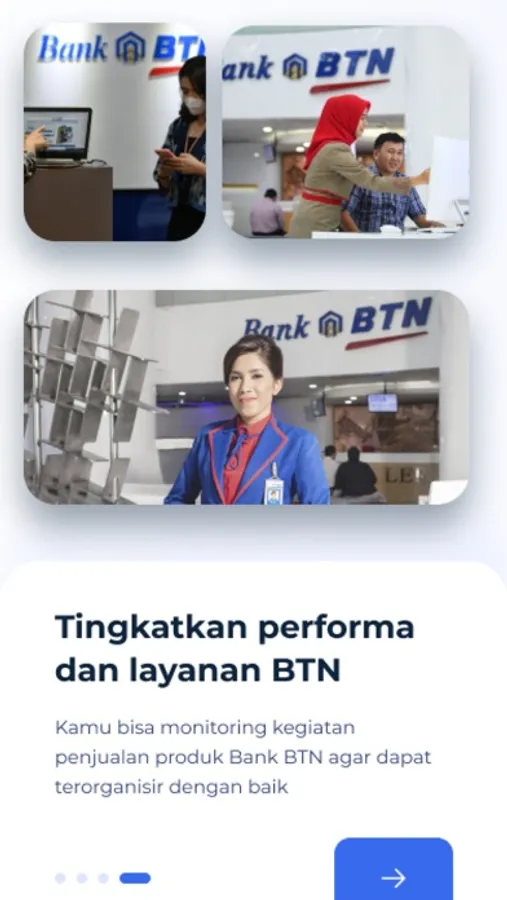 Aplikasi BTN Smart bertujuan untuk meningkatkan performa dan layanan dari pihak pihak terkait diantaranya: Teller, Sales dan Uplinernya sehingga kegiatan monitoring penjualan produk Bank “BTN” dapat teroraganisir dengan baik.
