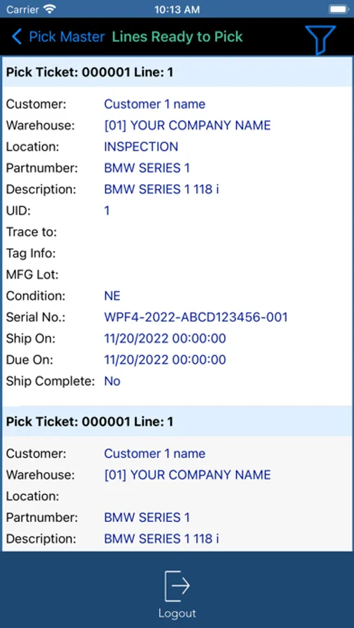 Enables remote paperless picking of parts associated with multiple pick tickets