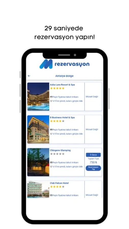 Ücretsiz rezervasyon imkanı ile tesiste ödeme avantajı… minirezervasyon.com’un mobil uygulaması ile seçtiğin tesis için rezervasyonunu anında yapabilir, ödemeni ise konaklama başlangıcında tesiste gerçekleştirebilirsin.