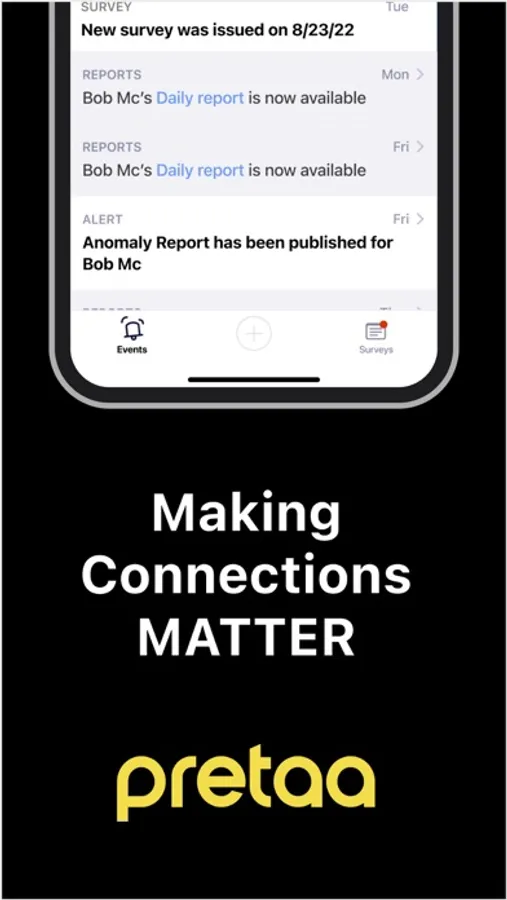 Pretaa's machine learning engine and signature algorithms take key biometric information and search for anomalies that suggest a patient is dysregulated and possibly heading towards a relapse, or that a lapse has occurred, and extra support would be beneficial. Caregivers, friends and family are then notified to help provide early guidance and treatment, getting clients back into treatment and saving lives. In combination with psychometric surveys, an SOS button, geofencing and positive engagement, Pretaa helps individuals get -- and stay -- in recovery longer.