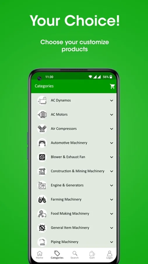 You can search following categories of machinery product in this app.