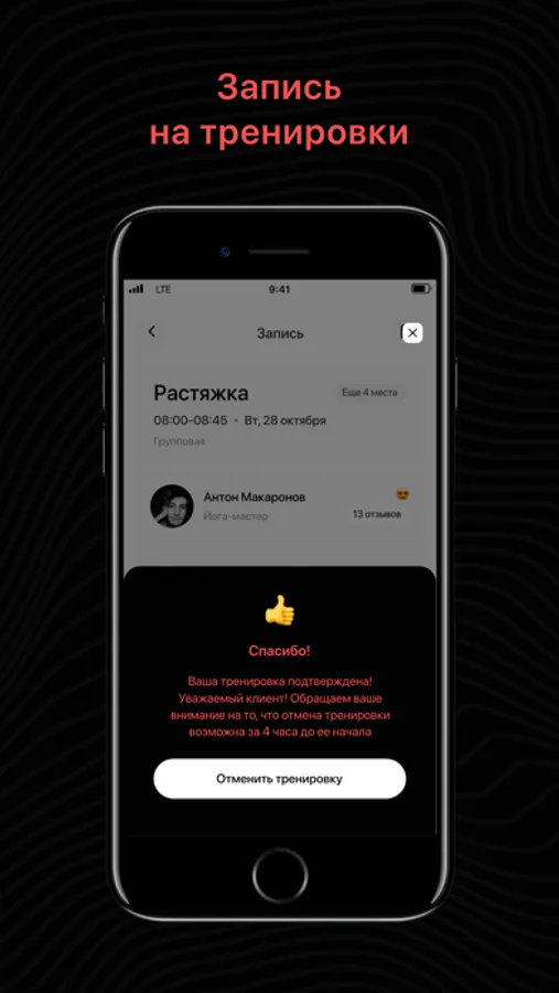 Получать PUSH-уведомления о предстоящей тренировке за 3 часа;